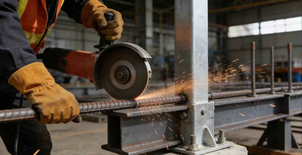 Əsas tətbiq: Fabrik binalarında tirləri, sütunları, döşəmə plitələrini və avadanlıq təməllərini gücləndirmək, dizayn çertyojlarına uyğun olaraq dəqiq kəsmək, genişmiqyaslı tikintiyə uyğunlaşmaq və quraşdırılmış komponentlərlə fabrik binasının ümumi struktur bütövlüyünü sinerji cəhətdən yaxşılaşdırmaq üçün istifadə olunur. 8mm, uzunluğu 600mm) və HRB400 yivli polad çubuqlar (diametri 14mm, uzunluq 3500mm) kəsici parçalar, müvafiq olaraq halqa möhkəmləndirilməsi və şüaların və sütunların əsas möhkəmləndirilməsi üçün istifadə olunur. Emal səmərəliliyi kəsici kənar üçün ≤ 0,5 ° şaquli sapma ilə 550 ədəd/saata çatır. Əvvəlcədən quraşdırılmış komponentlərlə yüksək uyğunluq dərəcəsinə, 99,8% qaynaq keyfiyyətinə və 320 ton istifadəyə malikdir. O, zavod avadanlığının ağır yükdaşıma tələblərinə cavab verir və beton konstruksiyaların dizayn xüsusiyyətlərinə uyğundur.