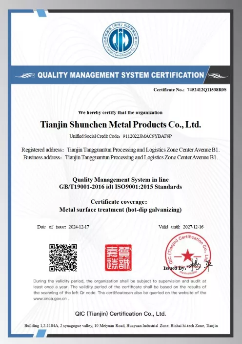 Etibarlı Məhsul Keyfiyyəti: Əsas material yüksək keyfiyyətli poladdan hazırlanır, formalaşdırma, qaynaq və sinkləmə daxil olmaqla bir çox dəqiqlikli proseslər vasitəsilə emal olunur. Üçüncü tərəfin sınaqlarından keçərək, bütün göstəricilər milli standartlara cavab verir, əla korroziyaya davamlılıq və mexaniki xüsusiyyətlər nümayiş etdirir, müxtəlif və mürəkkəb iş şəraiti üçün uyğundur.